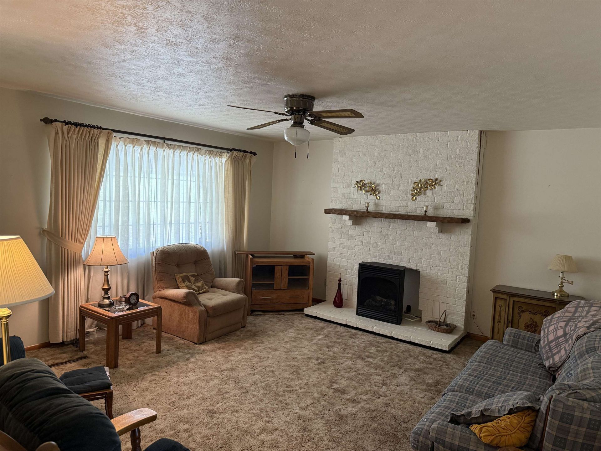 THIS COUNTRY HOME IS WARM, COZY AND INVITING. THE LIVING ROOM HAS SOFT NEUTRAL CARPETING, A WHITE GAS FIREPLACE AND A LARGE WINDOW FLANKING THE FRONT WALL ALLOWING THE FLOODING OF SUNSHINE. BEHIND THE LIVING ROOM IS A LARGE EAT IN KITCHEN SPORTING A LARGE BANK OF CABINETRY WITH WHITE COUNTER TOPS, WHITE BRICK BACKSPLASH, WHITE OVEN RANGE, A MICROWAVE OVEN, WHITE LIGHTED VENT, A WHITE DOOR OPENING TO A PANTRY AND DOUBLE DOOR OPENING TO THE WASHER AND DRYER. TO THE LEFT OF THE KITCHEN IS THE REFRIGERATOR AND ACCESS TO THE GARAGE. DOWN THE HALL YOU WILL FIND 3 BEDROOMS WITH CREAMY BEIGE CARPETING AND A FULL BATH WITH VANITY AND TUB. THE...read more